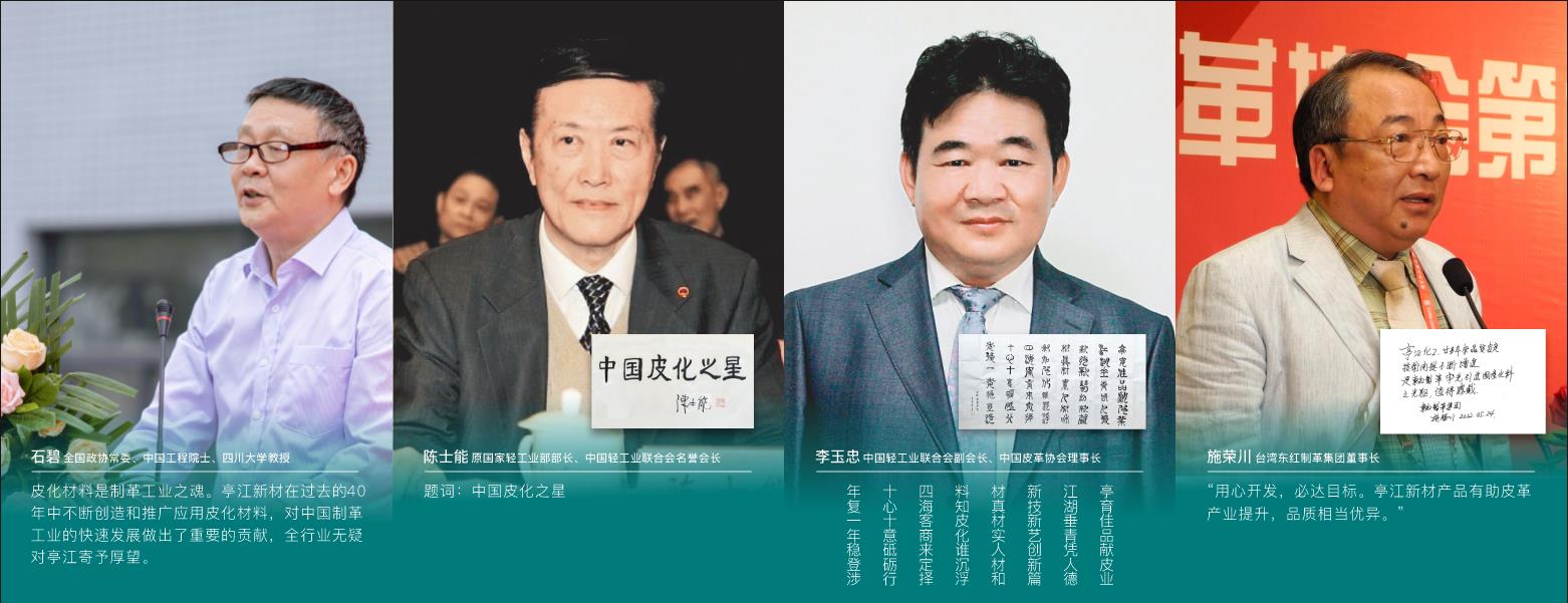 四川亭江新材料股份有限公司前身為創(chuàng)建于1983年的“亭江皮化”,坐落在素有“川西明珠”之譽(yù)的四川省什邡市。經(jīng)過(guò)40年的持續(xù)發(fā)展,公司已成為中國(guó)皮革化學(xué)品行業(yè)名譽(yù)主席及功勛企業(yè)。 主要產(chǎn)品